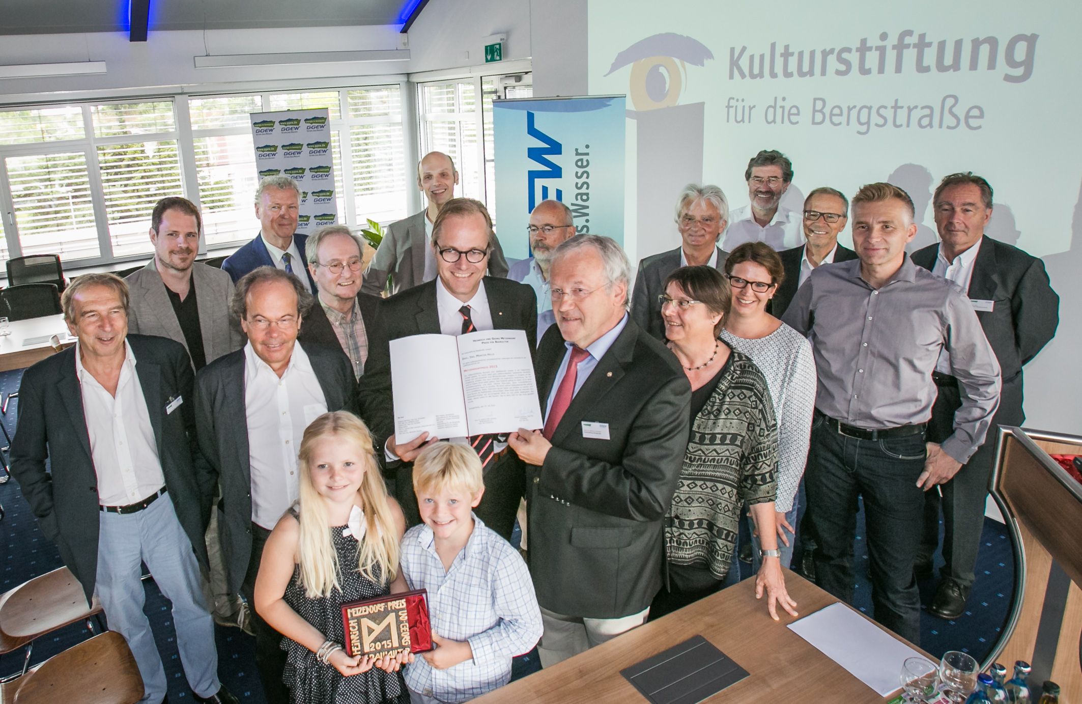 ZWINGENBERG/BENSHEIM, 19. Juli 2015. Mit dem in diesem Jahr zum ersten Mal von der „Kulturstiftung für die Bergstraße“ – in Kooperation mit dem Bund Deutscher Architekten BDA Hessen und dem Deutschen Werkbund DWB Hessen – vergebenen „Heinrich-und-Georg-Metzendorf-Preis für Baukultur“ wird der 2014 fertiggestellte zweigeschossige Erweiterungsbau der Liebfrauenschule in Bensheim ausgezeichnet. Der Architekturpreis dokumentiert sich in einer Plakette, die am 19. Juli dem Preisträger, dem Büro Hille Architekten + Stadtplaner BDA aus Ingelheim (www.hillearchitekten.de), in den Räumen des südhessischen Energieversorgers GGEW AG in Bensheim übergeben wurde.