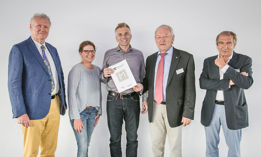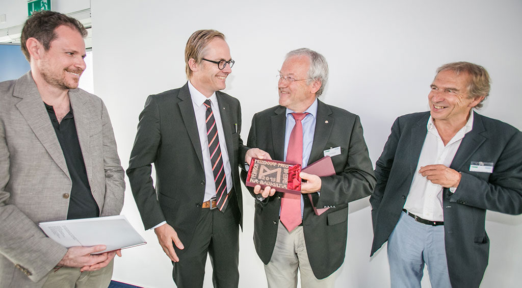 Verleihung der Plakette an den Preisträger Dipl.-Ing. Architekt M. Hille (2. v.l.) und Mitarbeiter (c) www.MarcFippel.de