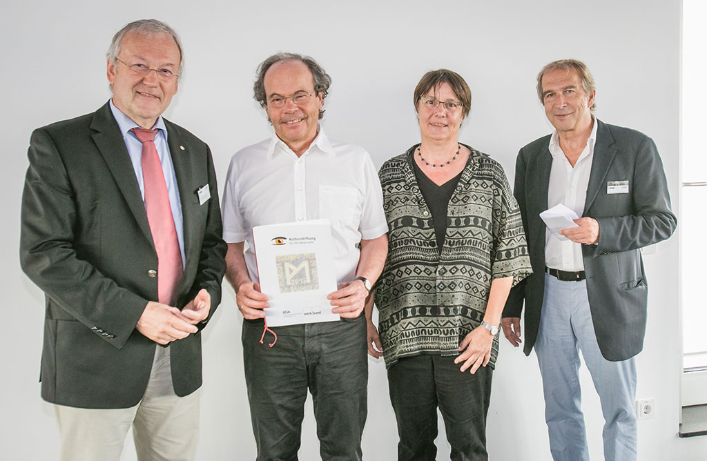 Anerkennung (2. Preis) an Dipl.-Ing. Architekt K. Kaffenberger (Mitte) und Mitarbeiterin sowie Dr. Horn (links) von der Stiftung Schloss Heiligenberg (c) www.MarcFippel.de